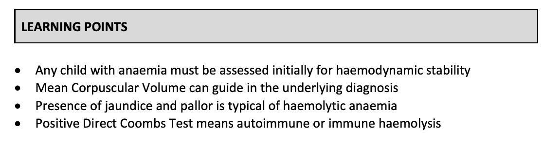 What investigations need to be done for anaemia in children?