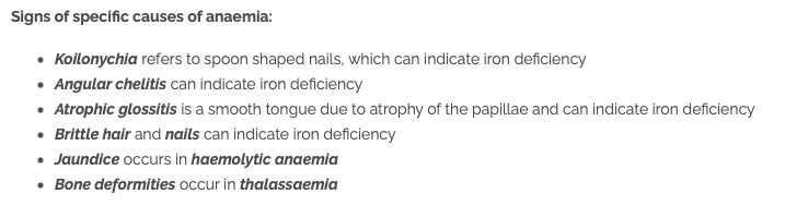 What are some signs of anaemia?