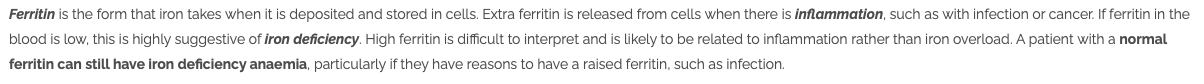 Why can ferritin be normal in iron deficiency anaemia?