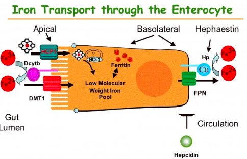 Need stomach acid to keep iron in soluble ferrous form (Fe2+)