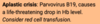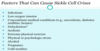 Aplastic crisis: increased anaemia, haemolysis and jaundice, without the normal response from the bone marrow of creating new red blood cells. No reticulocyte response. This is often triggered by infection with parvovirus.