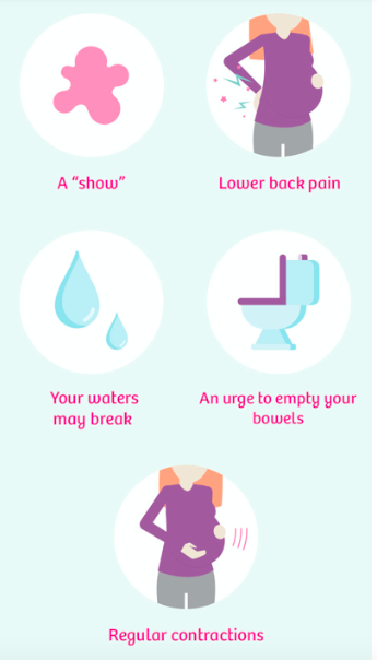 What are some signs of the onset of labour?