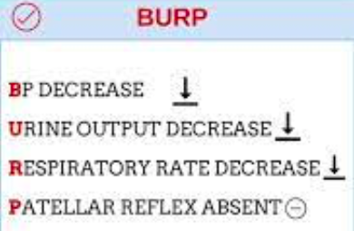 Magnesium Toxicity. Monitor observations and tendon reflexes every 4hours
