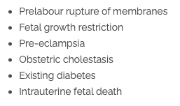 Conditions where foetus is at risk