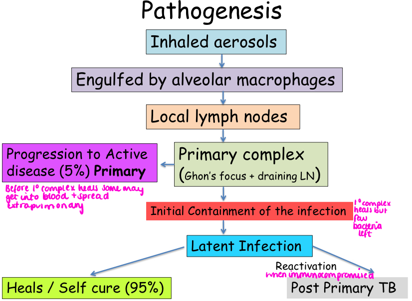 - Haemorraghe: extension of caseous process into vessels. leads to haemoptysis