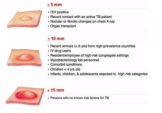 Protein from MTB injected intradermally. Skin reaction 48-72 hours later indicates previous TB exposure, type IV hypersensitivity reaction to MTB