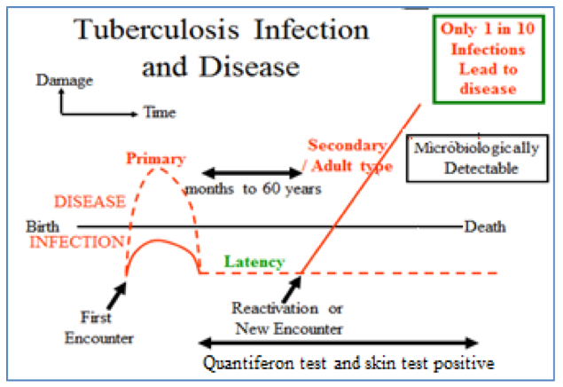 What is the likelihood of someone being infected with TB actually developing the active disease?