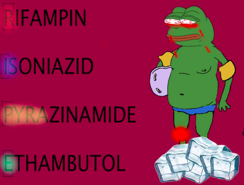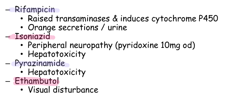 All 4 drugs for 2 months and then just R and INAH for a further 4 months. Give pyridoxine with INAH to stop peripheral nerve damage