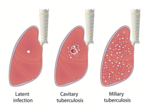 - Miliary TB: rupture of caseous pulomnary focus into blood vessel so widespread dissemination through body