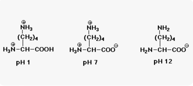 e. no charge at the a-carboxyl group, no charge on the a-amino group and a positive charge on the e-amino group.