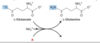 b. Two –CH2–SH groups are oxidized to form a –CH2–S–S–CH2– disulfide bridge between two cysteines