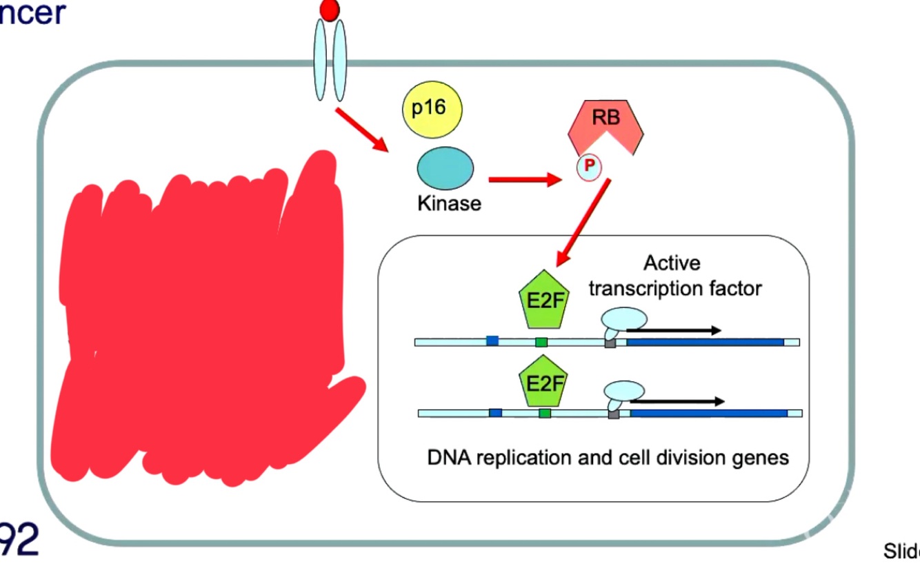 Signal for cell division results in E2F transcription factor moving in to the nucleus