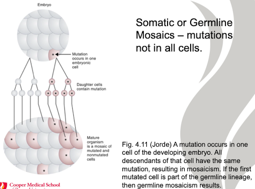 What is the difference between somatic and germline mutations? Do these exhibit mosaicism?