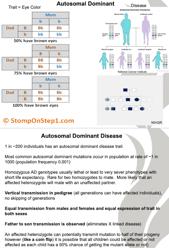 Describe the mechanism of Autosomal dominant transmission and associated diseases.