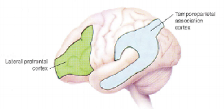Prefrontal, parietal, lateral temporal cortices