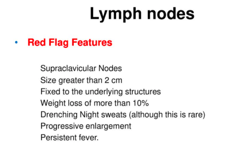 Worrying features: firm, indurated, fixed and matted lymph nodes that are usually not tender