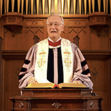 The pastor is holding a sermon.