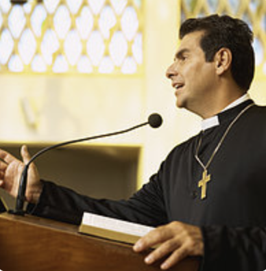Der Pfarrer hält eine Predigt.