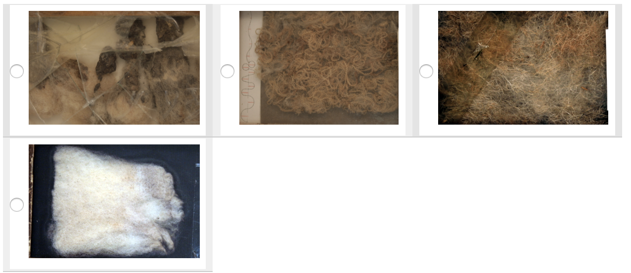 In the case of down, guard hair, intermediate and coarse wool.