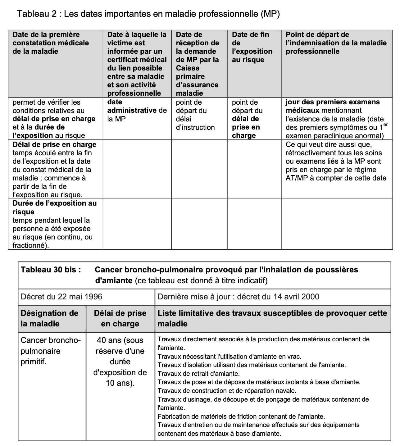 Chaque tableau de MP est doté d’un numéro et d’un titre faisant référence au risque et/ou à la pathologie concernée.