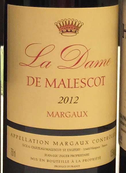The second wine of Chateau Malescot St. Exupery is La Dame de Malescot