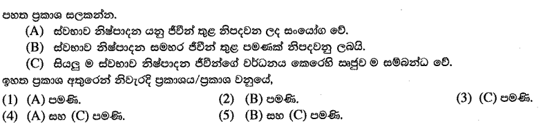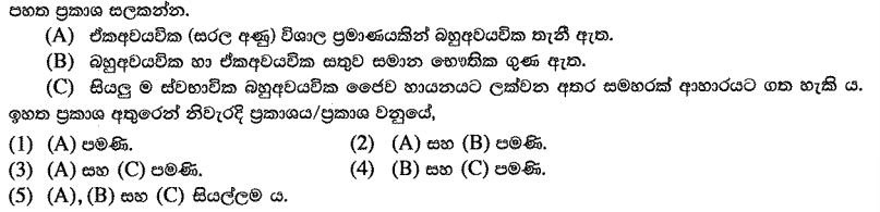 රසායනික කර්මාන්ත and ස්වභාවික නිෂ්පාදනPast Papers