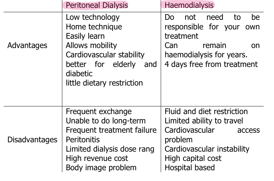 What are the advantages and disadvantages of peritoneal and haemodialysis?