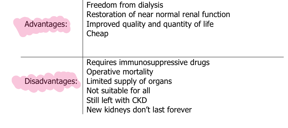What are the advantages and disadvantages of having a kidney transplant to treat CKD?