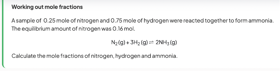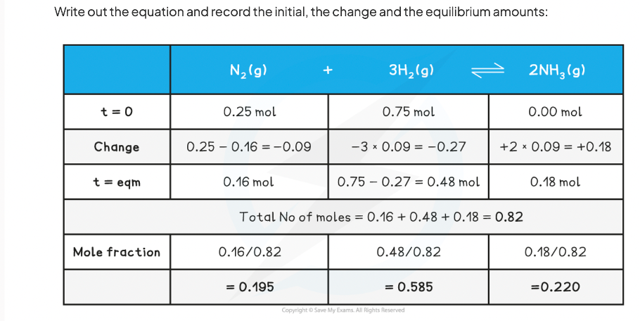 fraction of the total number of moles that each chemical in a reaction is responsible for