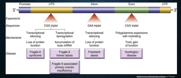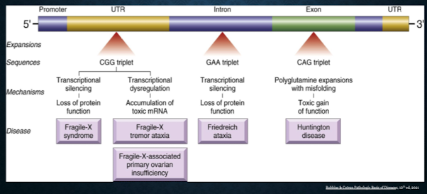 Trinucleotide repeat disorders: consist of a group of human diseases, which are a result of an abnormal expansion of repetitive sequences and primarily affect the nervous system. These occur during various stages of human development