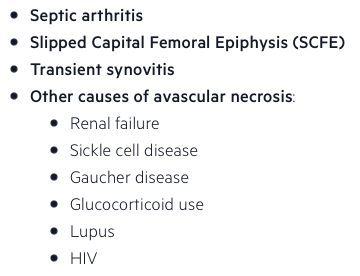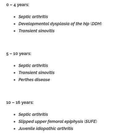 • Main cause of hip pain aged 3-10, diagnosis of exclusion