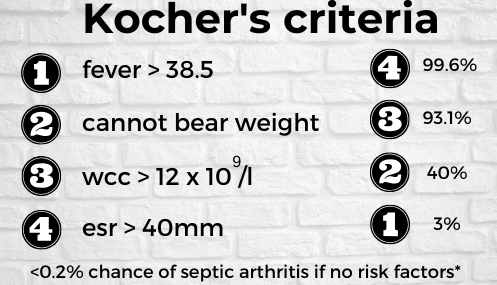 • <3 as transient synovitis rare in this age, likely septic arthritis