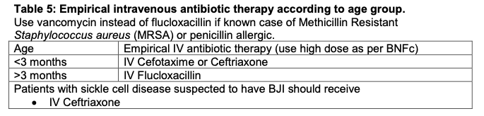 * **IV flucloxacillin**: for 6 weeks * **Surgical washout and debridement:** if severe