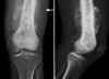 **Osteosarcoma** * Aged 10-20 years * Usually femur, tibia or humerus * Associated with retinoblastoma