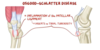 **Inflammation at the tibial tuberosity** where the **patella ligament inserts** due to **repeated avulsion of the apophysis.** Tibial tuberosity is at growth plate so repeated stress causes **bone growth and a lump** to form Common cause of anterior knee pain in children aged 10-15, usually males. Usually unilateral