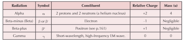 What is the mass, in atomic mass units, or each type of nuclear radiation?