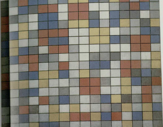 Koláž čtverců uspořádaných podle zákonů náhody