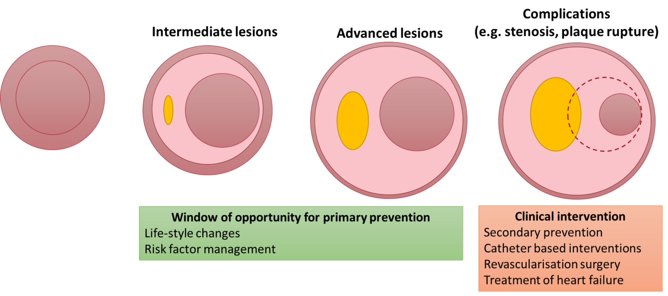 When is the window of opportunity for primary prevention of atherosclerosis and clinical intervention?