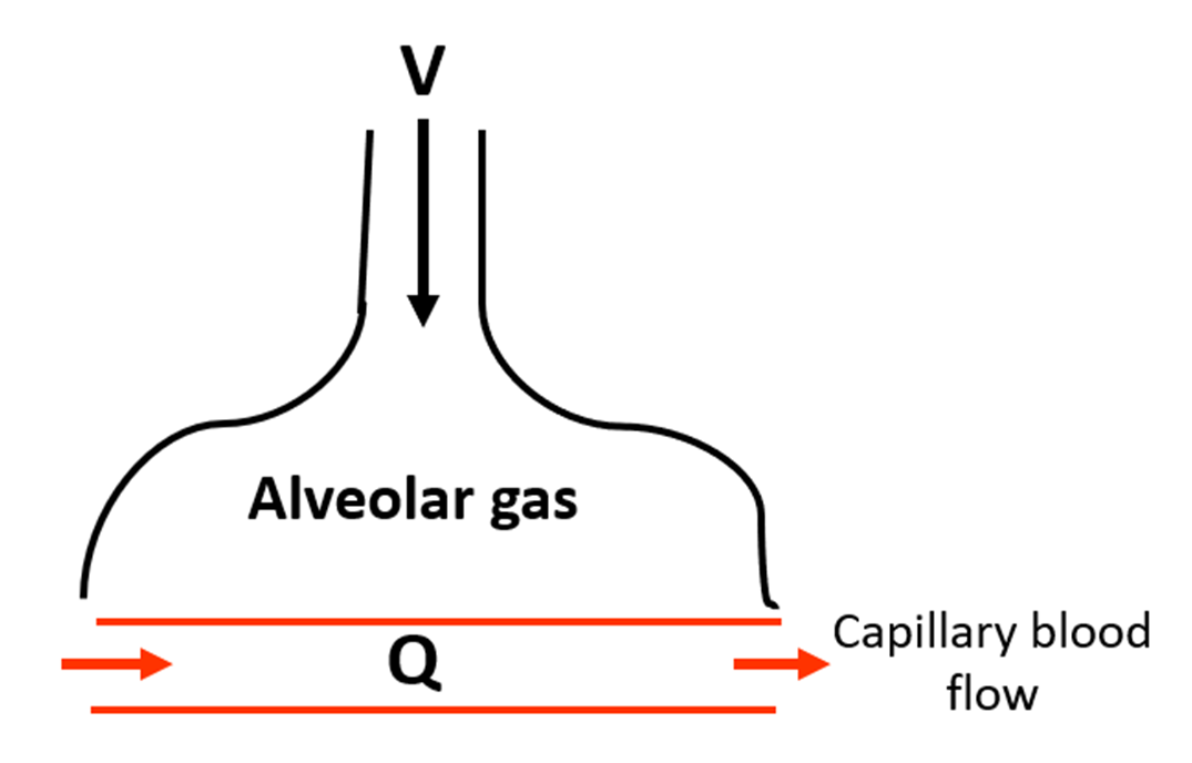 How does the capillaries react to non-ventilated alveoli due to pathology?