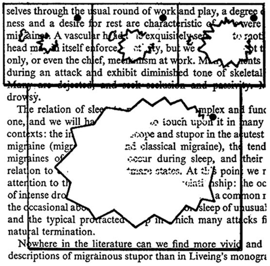Migraine is caused by spreading electrical depression across the cerebral cortex and as it goes across the visual cortex you get the expansion and movement of the migraine aura image