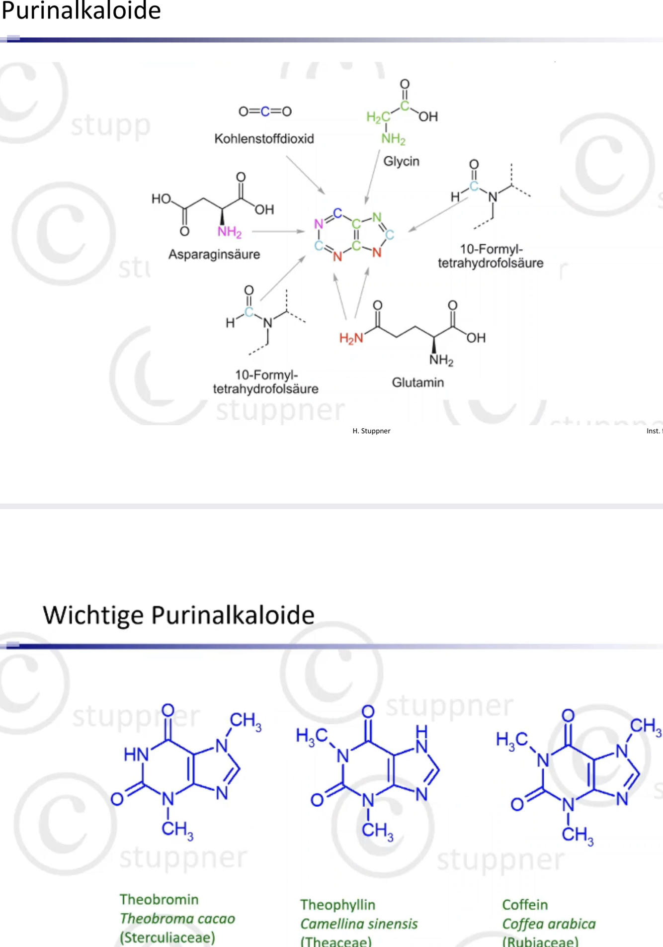 –> Theobromin und Theophyllin sind sauer (aufgrund NH) mit einer Kalilauge können diese in ein Salz überführt werden