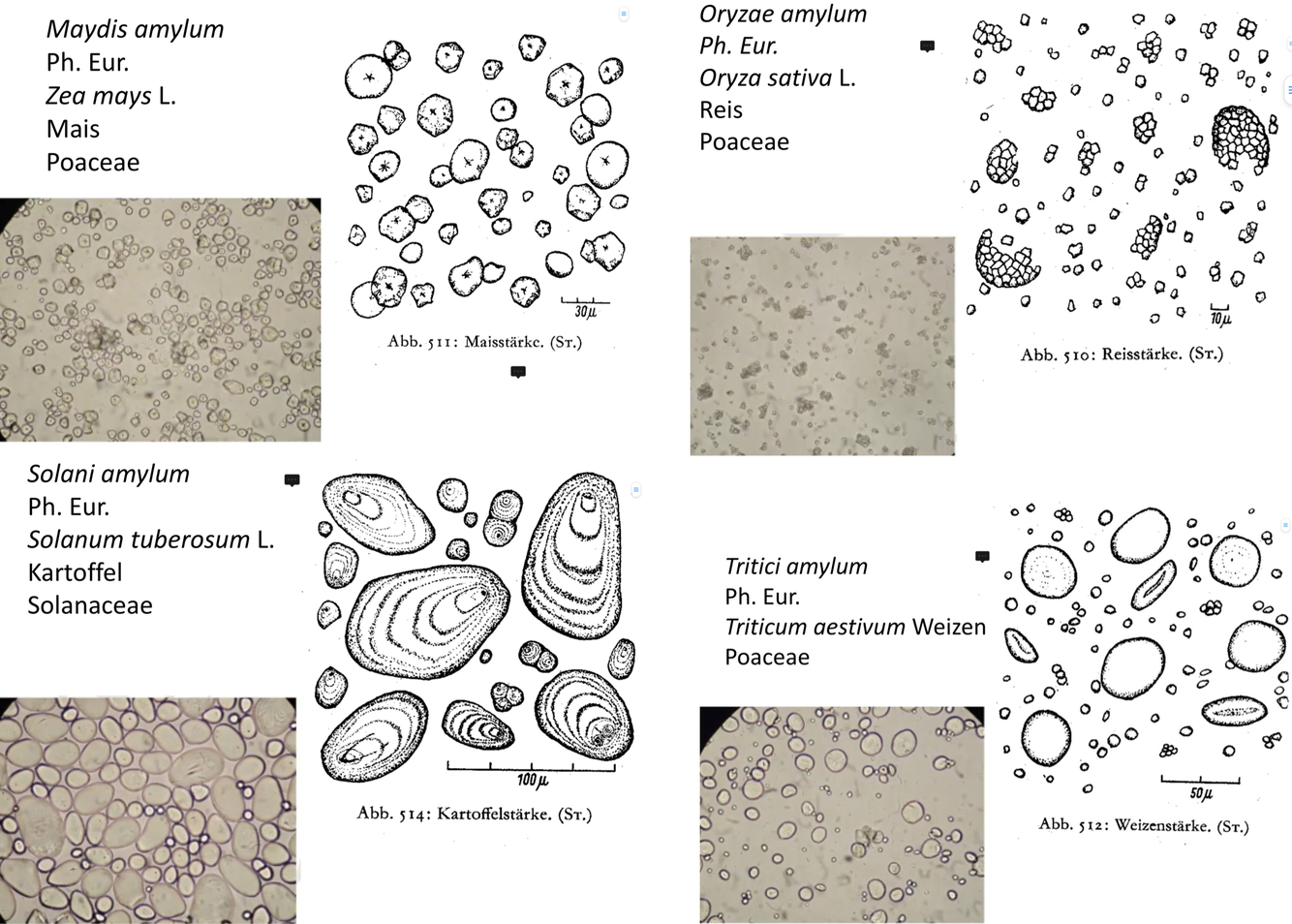 Kartoffel: eieerförmig charaktrtistische Schichtung, elliptisch mit konzentrischem Bildungszentrum bis 100ym, größte stärke