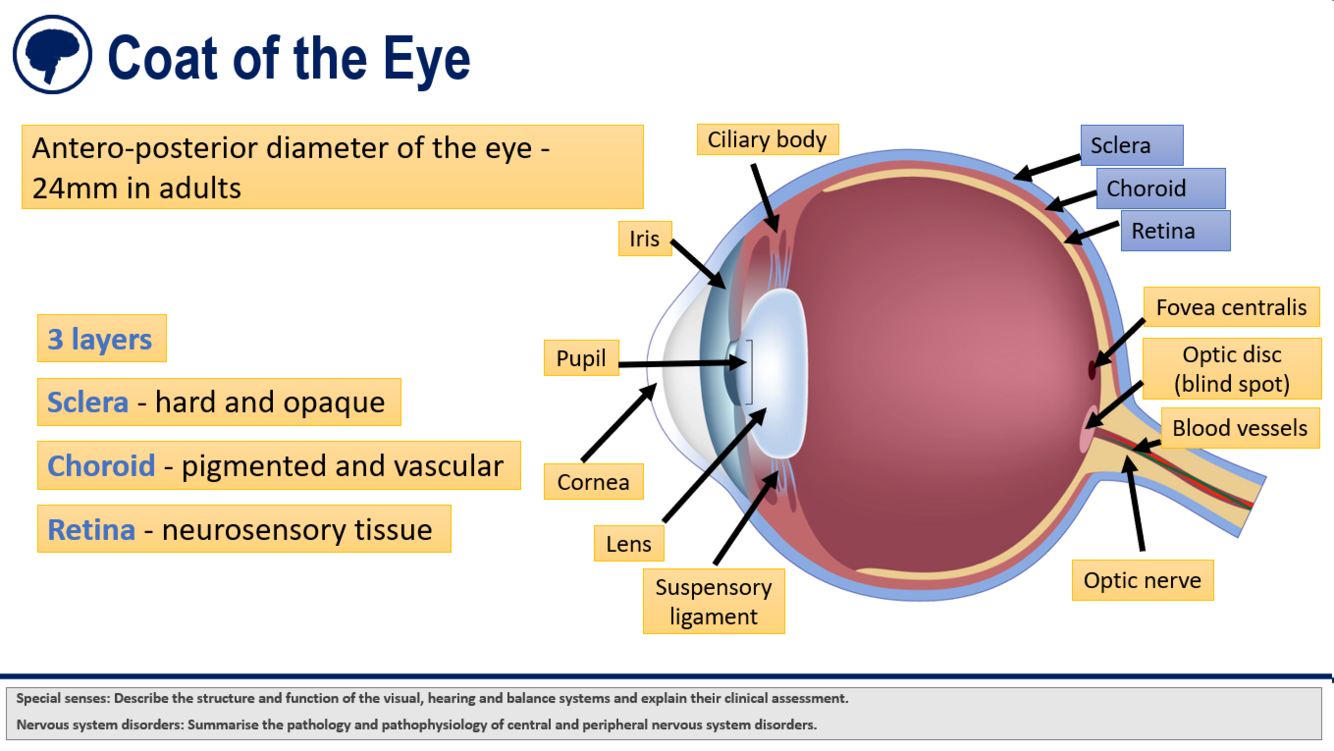 What are the three layers of the coat of the eye?