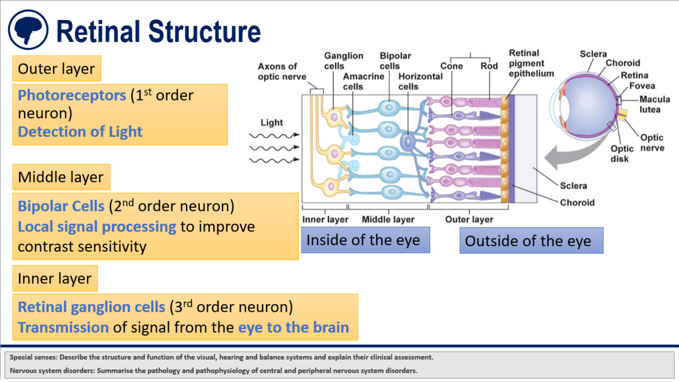 Describe the retinal structure