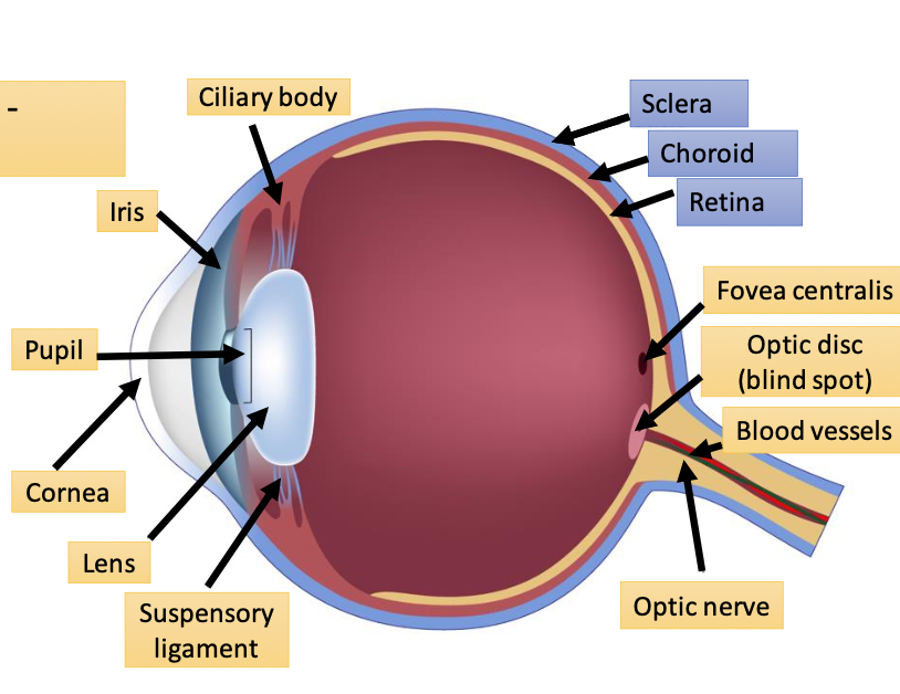 Responsible for capturing the light rays that enter the eye. Much like the film’s role in photography.