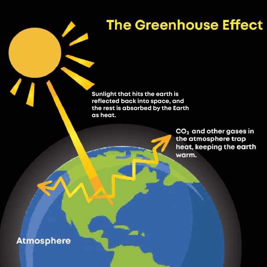 Gases in the atmosphere can trap infrared radiation, raising Earth’s temperature and preventing heat from escaping back into space.