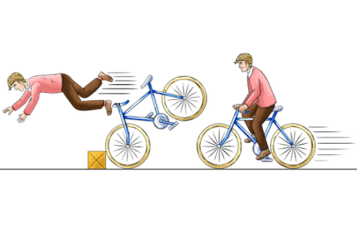 1)What happens to a bike rider who hits a big rock (or other obstacle) ?