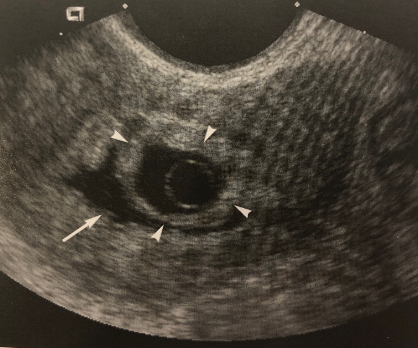 No evidence of fetal pole or yolk sac within a gestational sac—