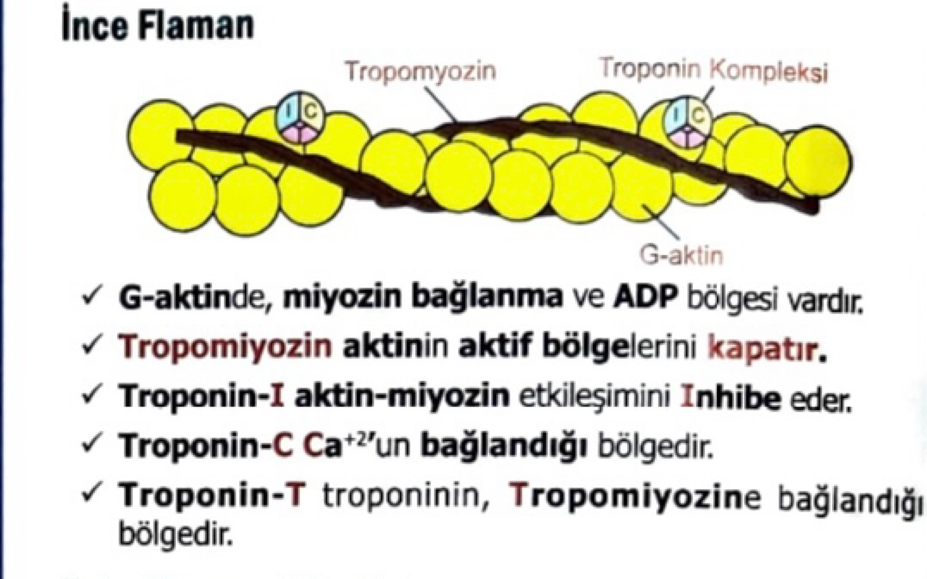 Troponin-C, kas kontraksiyonunu başlatmak için kalsiyum iyonlarını bağlar.