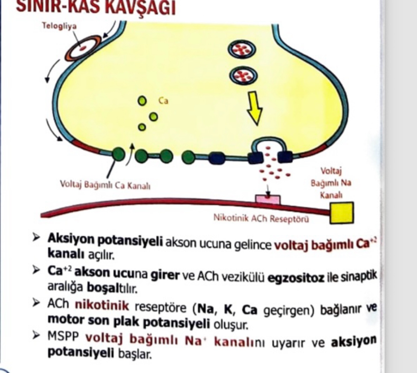 ACh, sinapslarda kas hücrelerinin uyarılmasında kritik bir rol oynar.